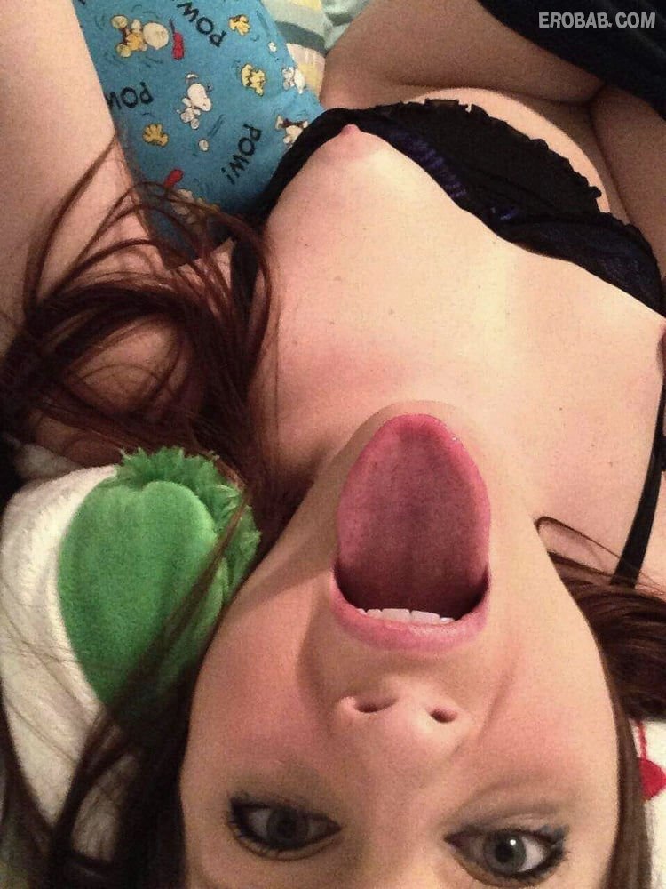 Голая рыжуха мнет свои большие сиськи перед камерой