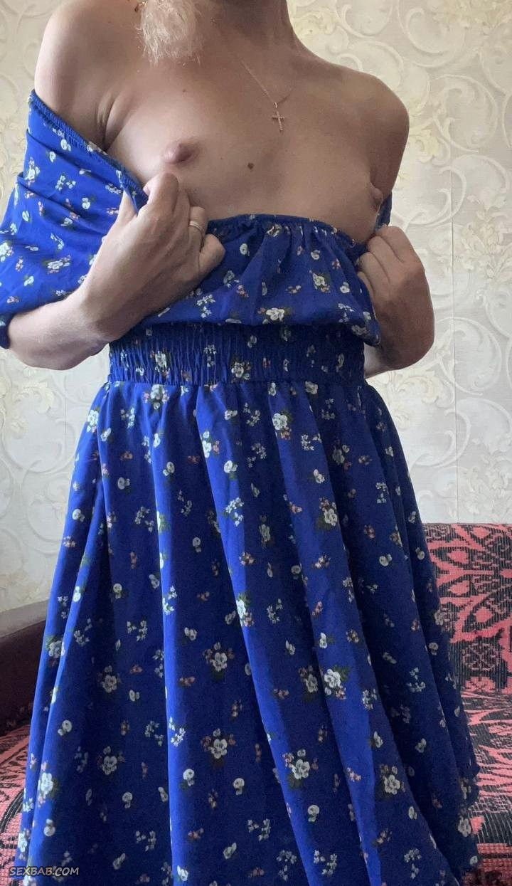 Белокурая девка примеряя халат засветила свою маленькую грудь и голую задницу (9 фото)