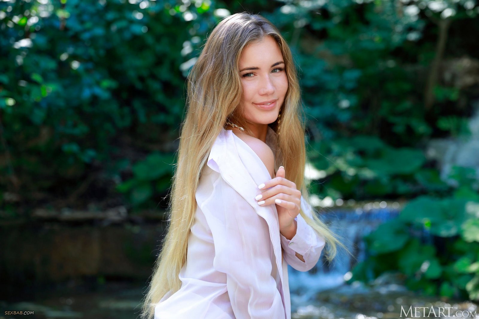 Описание: Соблазнительно оголяя перед камерой то свои маленькие титечки, то упругую подтянутую попку, красивая девушка в рубашке на голое тело эротично позирует на природе и, широко раскрывая свою гладкую промежность, крупным планом засвечивая аккуратную сладкую писечку.