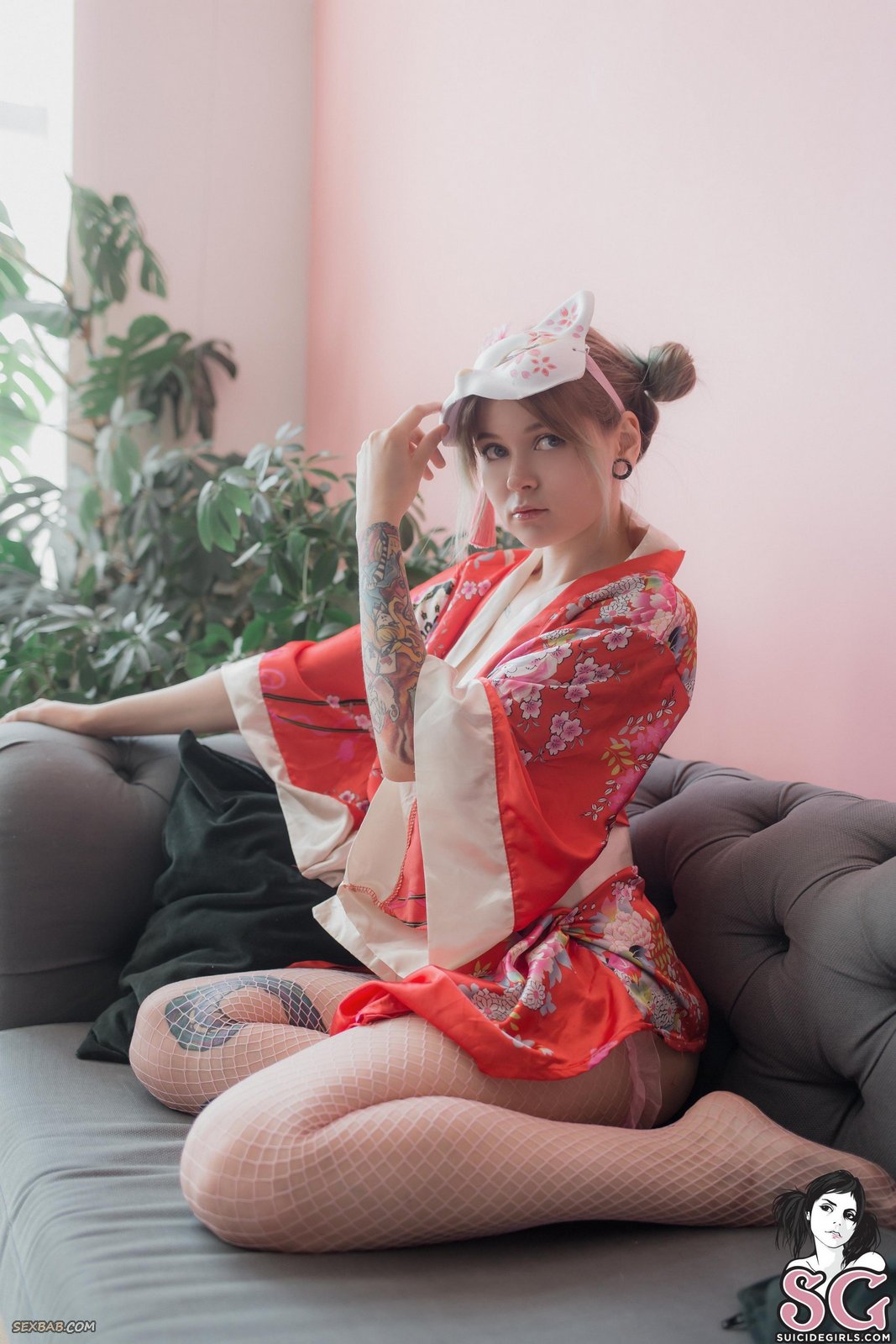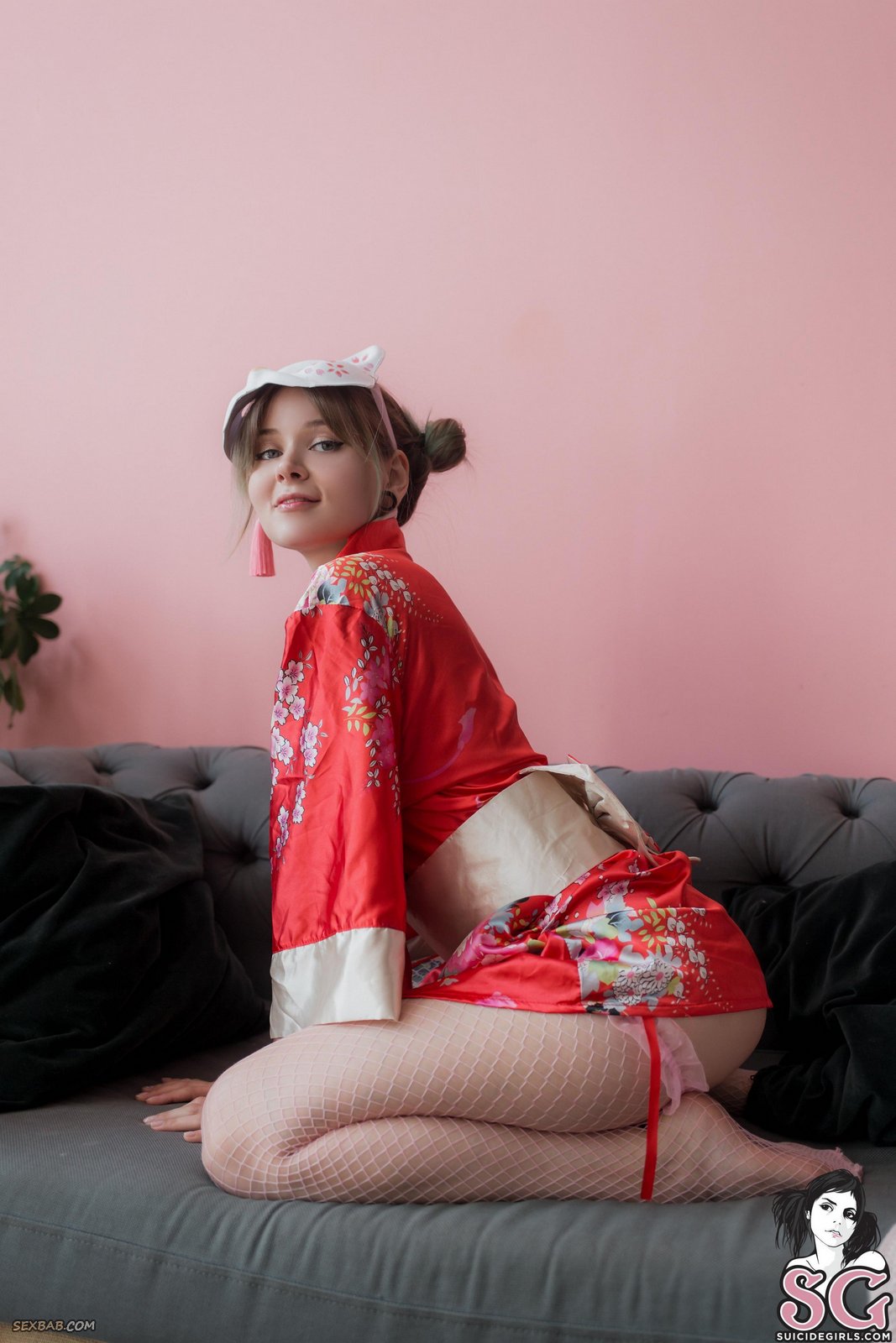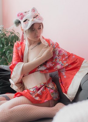 Описание: Очаровательная милашка в коротком кимоно и эротичных сетчатых чулках медленно сняла перед камерой маленькие трусики и бесстыже оголила свою нежную аппетитную попку. Игриво виляя ею в разных возбуждающих позах, обнаженная детка не стесняется показать себя во всей красе и интригующе засвечивает свою бритую пиздёнку между больших булочек.