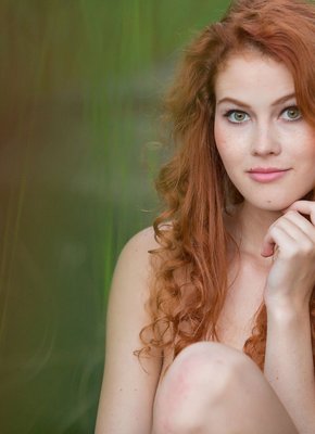 Кудрявая рыжуха светит голыми упругими титьками