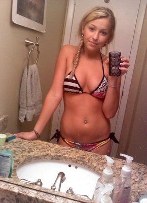 Описание: Оставшись одна дома, бесстыжая девка разделась перед камерой и активно фотографирует через зеркало свои голые упругие титьки. Голая блондинка с натуральными возбуждающими формами развратно выпячивает крупным планом свою бритую розовую пизденку, демонстрируя ее во всех подробностях.