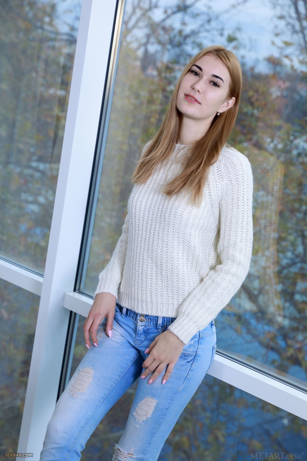 Описание: Начав эротично позировать рядом с домом, высокая девушка, про таких ещё говорят шпала, с худенькой талией в джинсах заигрывает с нами и вскоре раздевается догола. Обнаженной стройняшка с плоскими сиськами поглаживала красивую подтянутую попку с узкими бёдрами руками и меняя ракурсы засвечивала бритую письку с гладким лобком.