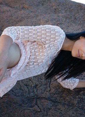 Описание: Улыбаясь и эротично позируя на камнях, молодая брюнетка с привлекательным лицом и голой писечкой в процессе скидывает с себя остатки одежды. Поглаживая себя руками, сексуальная девушка с маленькой грудью часто раздвигала ноги и демонстрировала крупным планом промежность.