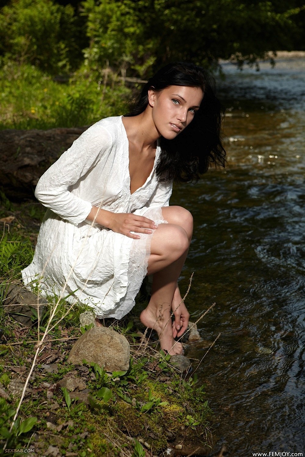 Описание: Скинув на природе платье, стройная молодая брюнетка с красивой внешность позируя забирается в речку, где она купается и в то же время позирует перед фотокамерой. В обнаженном виде сексуальная девушка с маленькой грудью и набрякшими сосочками не стеснялась демонстрировать нам самые сокровенные и интимные части её тела.