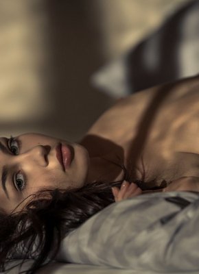 Описание: Соблазнительно медленно сняв кружевное черное белье, сексуальная голая девушка красиво позирует в постели перед камерой. Молодая брюнетка с натуральными мягкими сиськами расслабленно изгибается в разных позах, чувственно потираясь своей нежной чувствительной кожей о прохладные простыни.