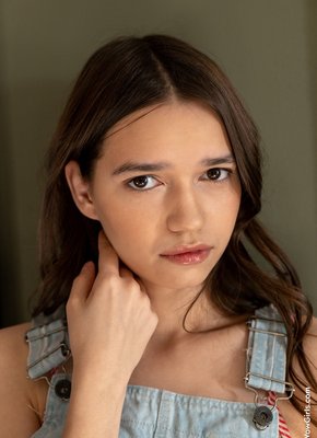 Описание: Молодая скромная милашка в джинсовом комбинезоне и кружевном белье медленно разделась до гола, медленно оголяя свое нежное худое тело. Голая детка с маленькими плоскими титьками и коричневыми сосками эротично позирует на полу и с разных ракурсов засвечивает на камеру свою бритую мягкую писю.