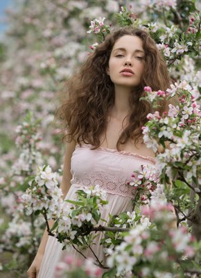 Описание: Соблазнительно скинув с себя платье, кудрявая красавица с шикарной возбуждающей фигурой гуляет по большому цветущему саду. Сексуальная девушка с большой упругой грудью чувственно изгибается в разных эротичных позах, игриво демонстрируя на камеру свою аппетитную мягкую попку и пушистый лобок.