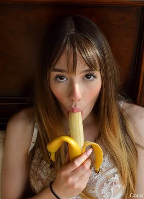Описание: Одетая в красивое кружевное белье, похотливая нимфоманка сорвала с себя трусы и сильно засунула большой твердый банан в свою бритую розовую письку. Возбужденная девка широко раздвигает свои голые бледные ноги и страстно трахает мокрую жадную пизду толстым овощем.