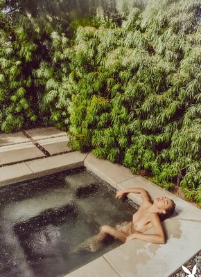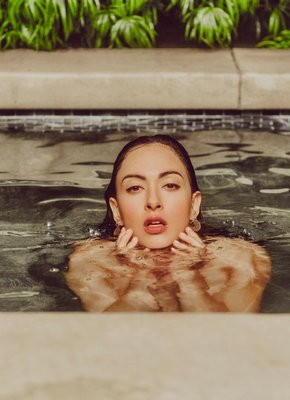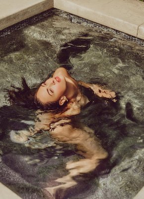 Горячая телка плавает в бассейне голышом