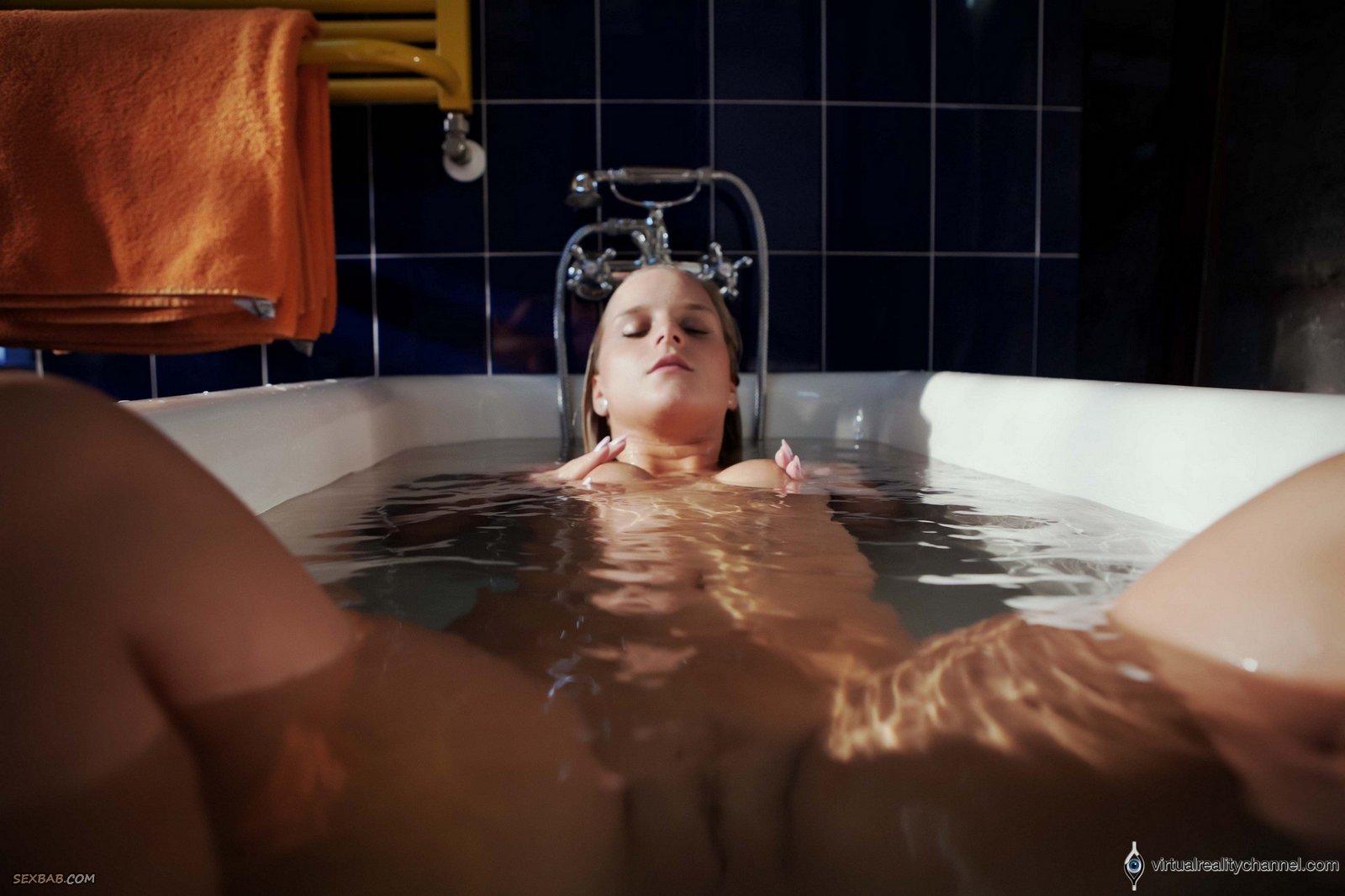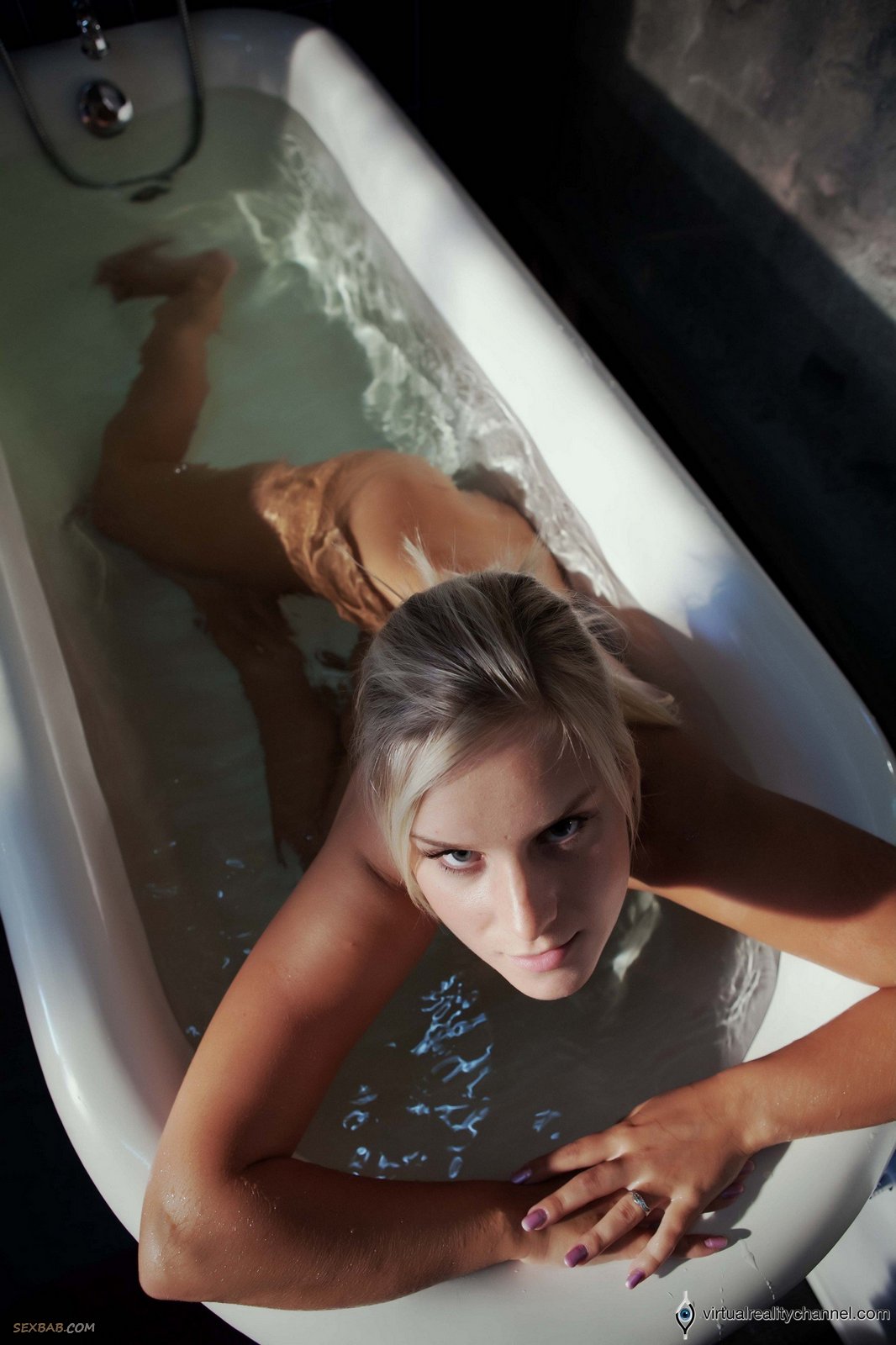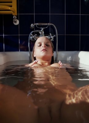 Описание: Выключив свет, голая блондинка с натуральными упругими сиськами расслабленно плещется в большой ванне, эротично позируя при этом перед камерой. Выставив на показ свое аппетитное мокрое тело, развратная баба начала чувственно ласкать рукой свою бритую письку и громко стонать от удовольствия.