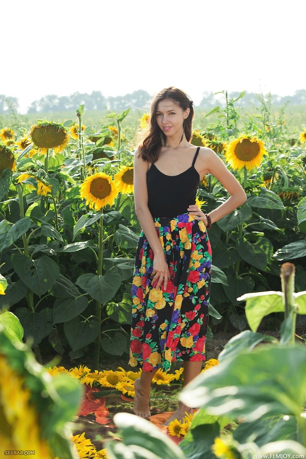 Описание: Отыскав удивительно красивую локацию в поле с подсолнухами, молоденькая девка медленно скидывает с себя одежду и эротично позирует голая. Располагаясь на подстилке и нежно поглаживая маленькие сиськи руками сексуальная красавица забывает о своей скромности и позволяет нам насладиться её сладкой киской и худенькой попкой.