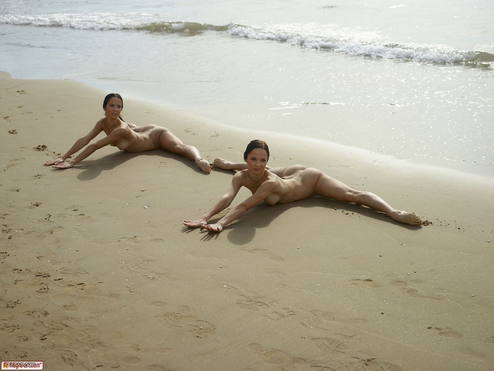 Описание: Оказавшись на пляже, молодые и абсолютно голые сёстры близняшки с привлекательной внешностью, берутся эротично раздвигать длинные ноги и показывать сексуальные тела. В процессе съёмки, чередуя разные ракурсы, стройные сестрички особенно тщательно показывают нам бритые письки и упругие сиськи с торчащими сосками.