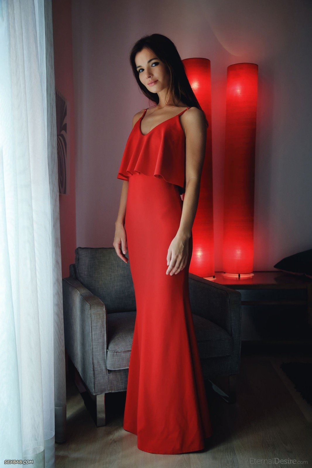 Девушка без трусов сняла красное платье