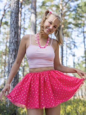 Описание: Устроив себе пикник на природе, развратная девица без трусов игриво задирает на себе короткую юбочку и возбуждающе светит под ней своей голой писькой. Постепенно раздевшись до гола, стройная блондинка с натуральными титьками энергично кривляется перед камерой и, лежа на земле в разных откровенных позах, демонстрирует нам свои самые интимные места.