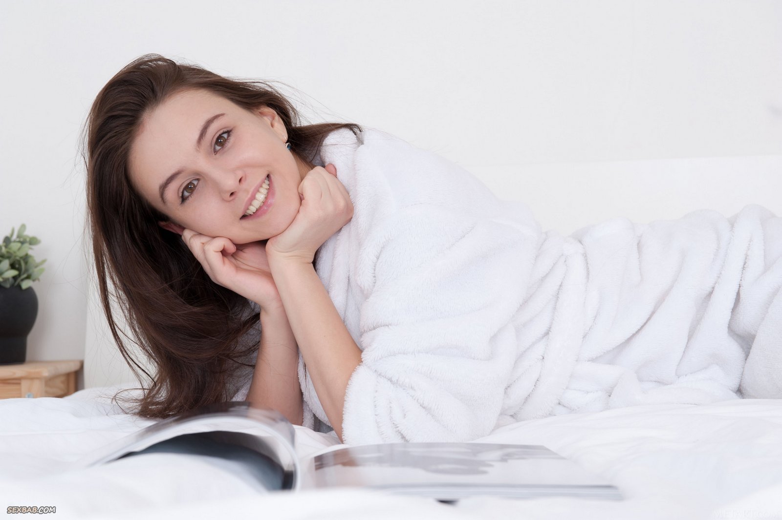 Описание: В номере отеля молодая брюнетка медленно сняла с себя махровый халат в большой постели и принялась эротично позировать на камеру. Красивая детка возбуждающе потягивается всем стройным сексуальным телом, выставляя на показ свою шикарную фигуру с большими упругими сиськами.