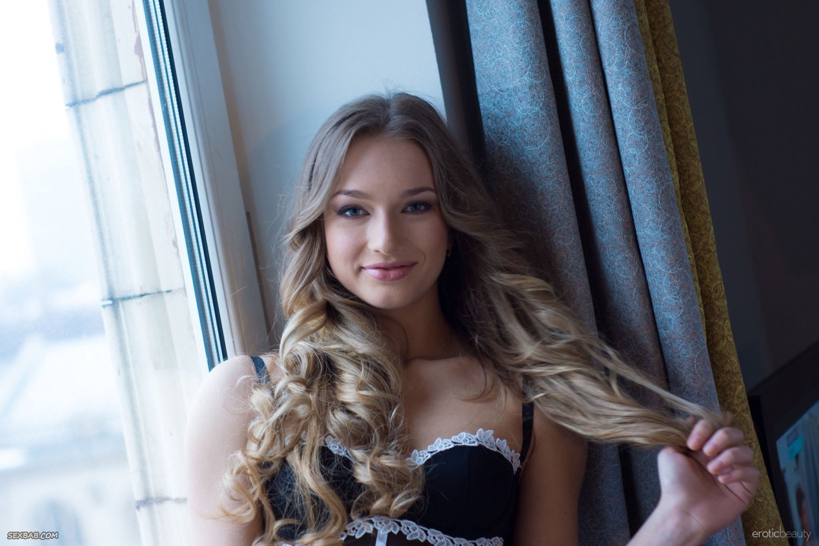 Описание: Нарядившись в эротичный пеньюар и сетчатые белые чулки, привлекательная девушка с вьющимися локонами располагается на подоконнике и начинает возбуждающе позировать. В будущем молоденькая стройняшка все же медленно оголилась и продемонстрировала плоские сиськи с гладко выбритым лобком и писькой.