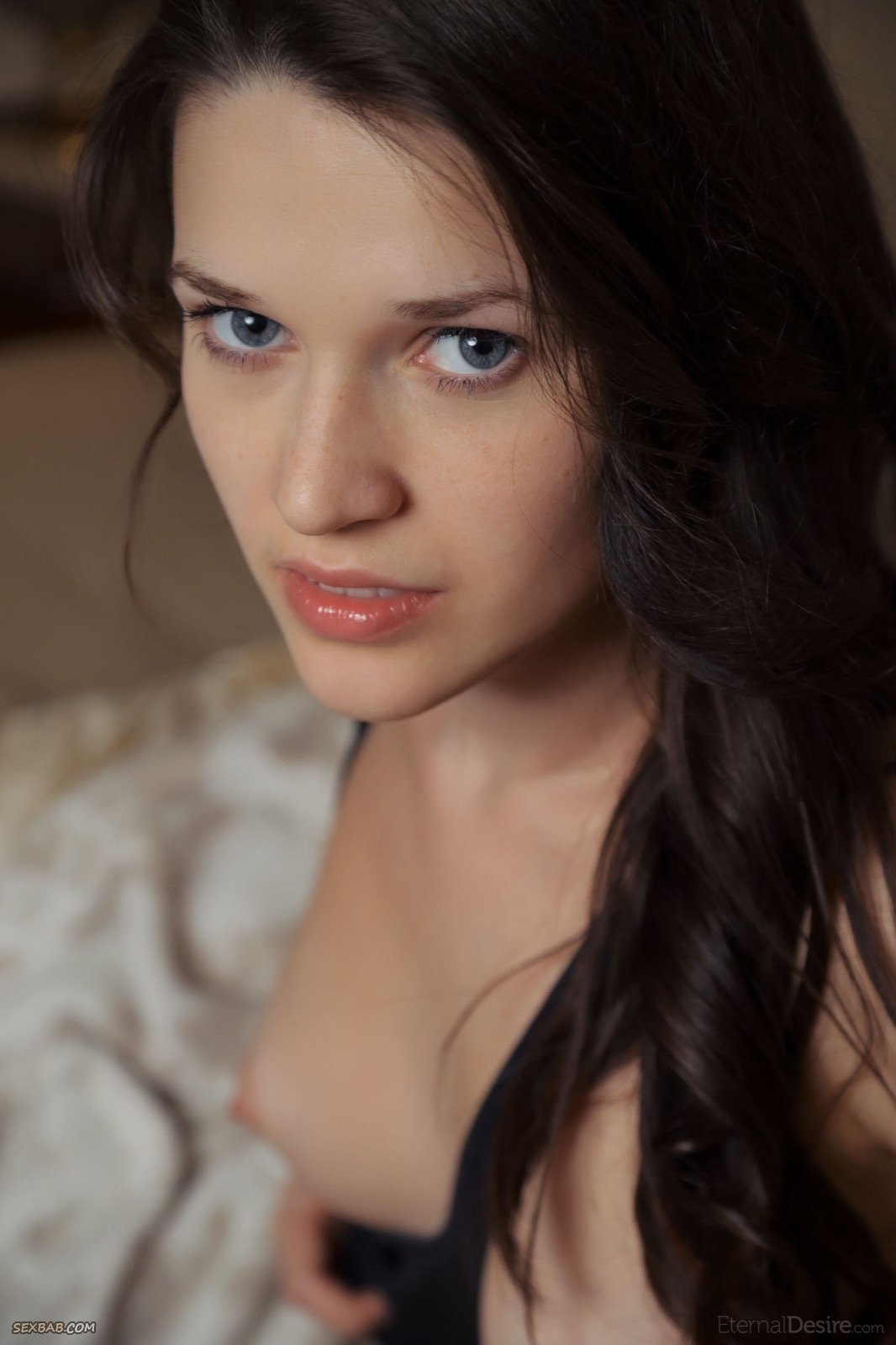 Описание: Молодая длинноволосая и невероятно красивая девица, устроившись у себя дома на кожаном диване, начинает эротично позировать без трусиков в майке, в процессе и вовсе раздеваясь догола. Стараясь чередовать разные позы, стройняшка подробно демонстрировала натуральные сиськи и бритую возбуждающую письку.