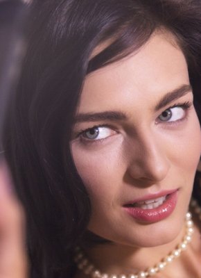 Описание: Скинув платье и трусики, темноволосая дама со стройной фигурой в чулках без трусов позирует перед камерой и делает эротичные селфи, наслаждаясь происходящим и игриво улыбаясь фотографу. В процессе съёмки брюнетка нежно сжимала сиськи руками и в самых разнообразных позах демонстрировала волосатый лобок с бритой писькой.