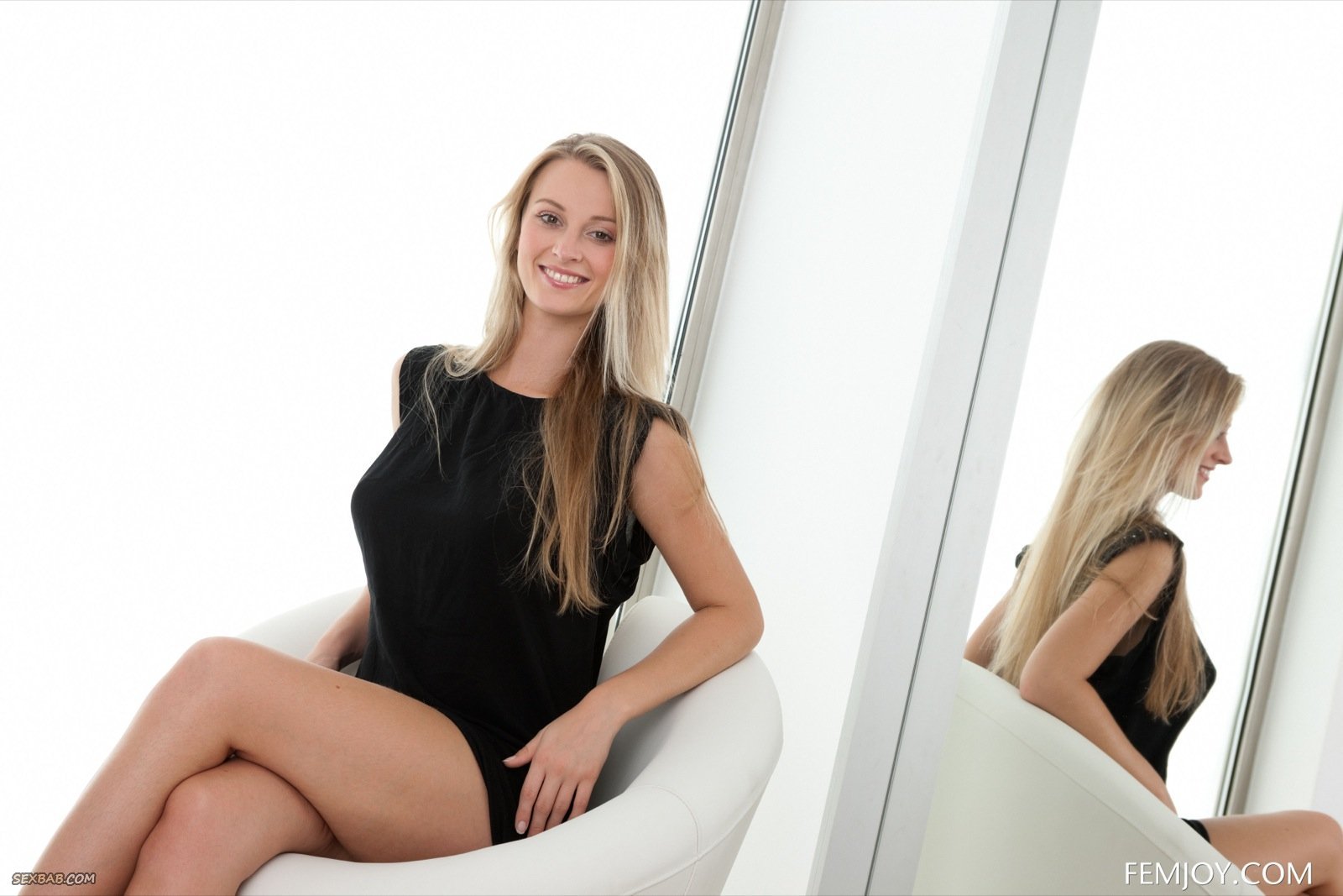 Описание: Сидя в кресле у себя дома, полностью голая девушка с натуральными и весьма упругими сиськами начинает чередовать самые возбуждающие позиции, при этом ощущая приятные эмоции. Таким образом сексуальной красотке удается так же засветить бритую письку с сочной подкаченной попочкой.