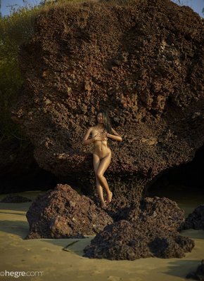 Описание: Расположившись рядом со скалами на пляже, смуглая и полностью голая девушка с влажными длинными волосами начинает красиво позировать и грациозно прогибаться. Наслаждаясь происходящим, молоденькая стройняшка подробно показала натуральные сиськи с немного набрякшими сосочками и бритую письку с попочкой, в процессе стараясь ставить руки на талию.