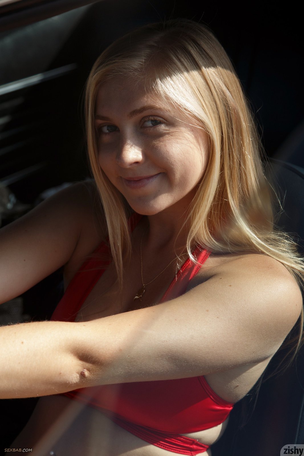 Описание: Скинув белые шортики и блузку с курточкой, молодая светловолосая девка с милой улыбкой начинает позировать рядом с машиной, предварительно нарядившись в красный купальник, демонстрируя себя с многочисленных ракурсов. В процессе обворожительная блондинка продолжает светить зубами и немного засвечивала натуральные буфера достаточно крупных размеров.