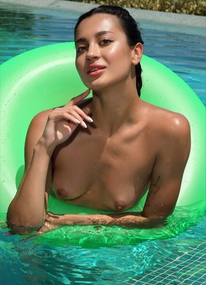 Описание: Отдыхая на частной вилле и без стеснения сняв с себя купальник, богатая загорелая сучка с плоскими титьками хорошо проводит время в прохладном бассейне. Расслабленно плавая голышом на надувном круге, длинноногая красотка демонстрирует нам свои самые интимные места, в том числе и темную пизду в бритой промежности.