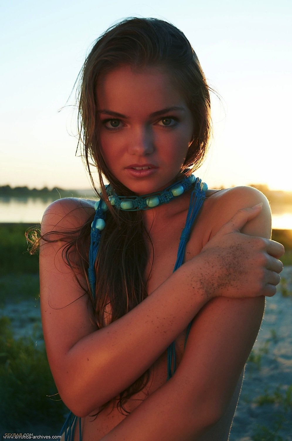 Описание: Раскрепощённая девка сняла купальник перед своим дружком и голая искупалась в пруду, позволив понаблюдать за ней через объектив фотокамеры. Тощая красавица демонстрирует маленькие титьки с аккуратными сосками, показывает свою худую задницу, а в завершение обнажает и сладкую киску.