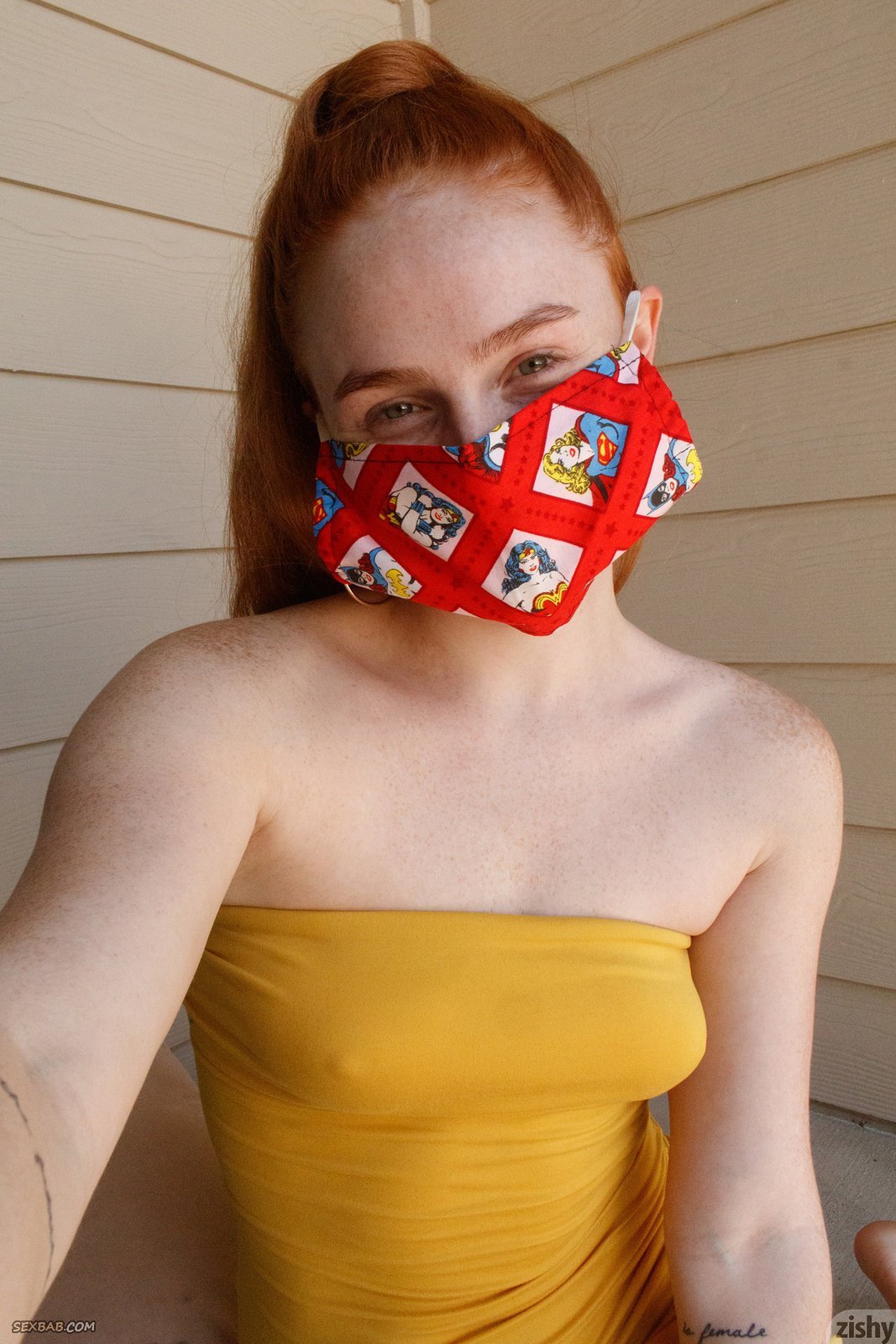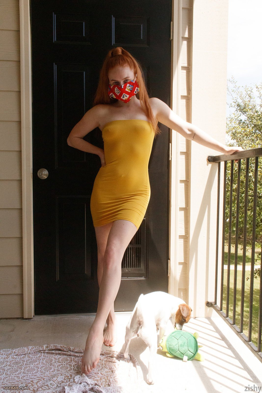 Описание: Скучая дома на карантине, рыжая молодая девица в маске и коротком облегающем платье с радостью позирует и строит глазки перед камерой. Во время съёмки, сексуальная милашка все же раздевается догола и засвечивает маленькие торчащие сиськи с сосочками и письку с волосатым лобком.