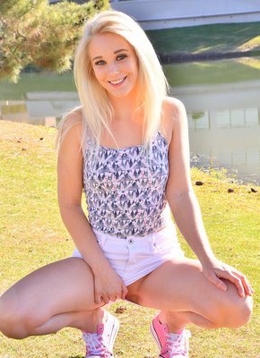 Описание: Выбрав самое уединённое место на улице, привлекательная худая блондинка, широко улыбаясь, начинает медленно, раздевается, снимая короткие шорты. Засветив голую попку и бритую письку, молодая девушка перебралась домой, где продолжает показывать нам маленькие сиськи с пирсингом в сосках.