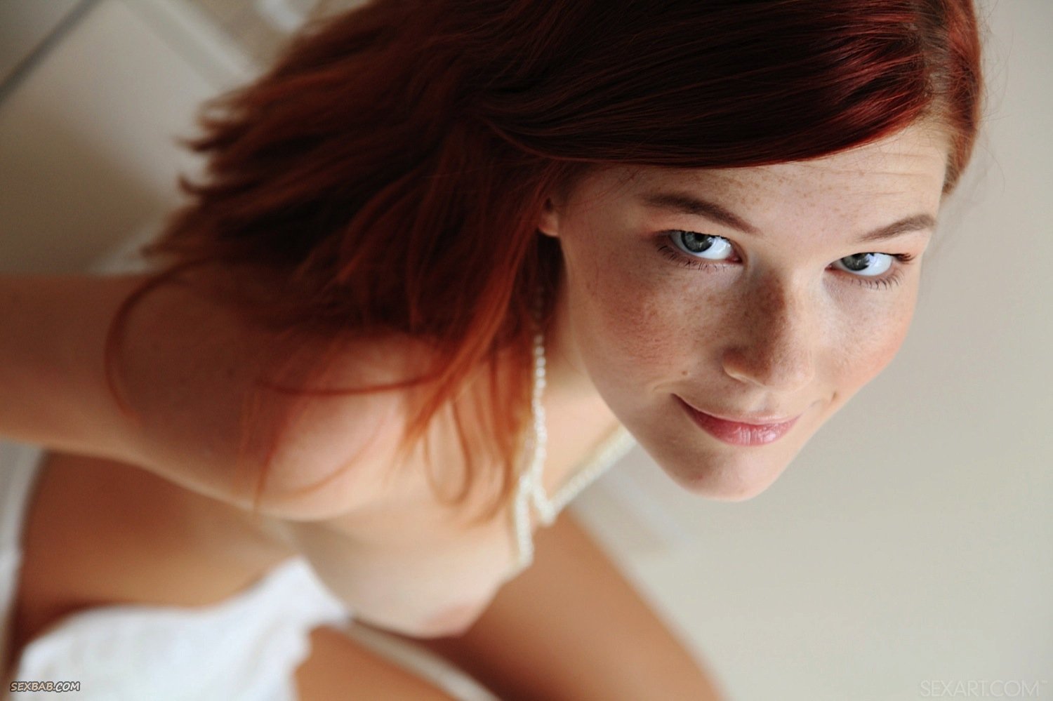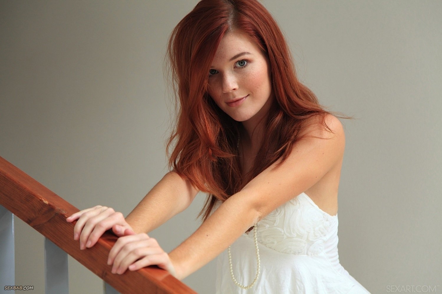 Описание: Спускаясь по лестнице, рыжеволосая простушка с красивыми глазами и сексуальной фигуркой, медленно раздевается догола и перебирает перед фотокамерой разные возбуждающие ракурсы. Послушно выполняя все указания фотографа, соблазнительная стройняшка с большой радостью показывает свои упругие натуральные сиськи и бритую письку, порой, лаская промежность пальцами.