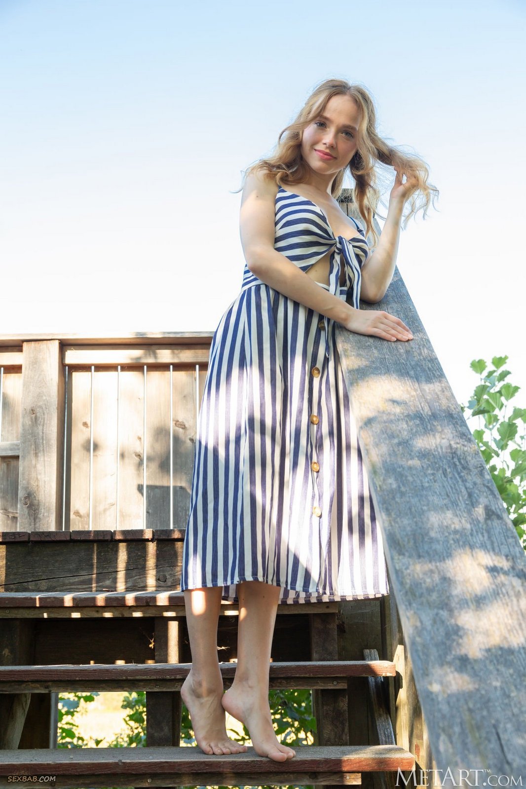 Описание: Кокетливо зажимаясь перед камерой и медленно стягивая со своего молодого подтянутого тела платье, голая милашка возбуждающе светит упругими сиськами и как умеет позирует для нас где-то в деревне, интригующе сжимая бёдра и пряча от внимательных глаз свою бритую писю.