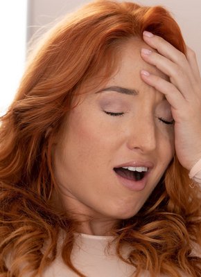 Рыжая возбужденная девка удовлетворяет письку