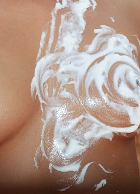 Голая красивая девка измазалась сливками