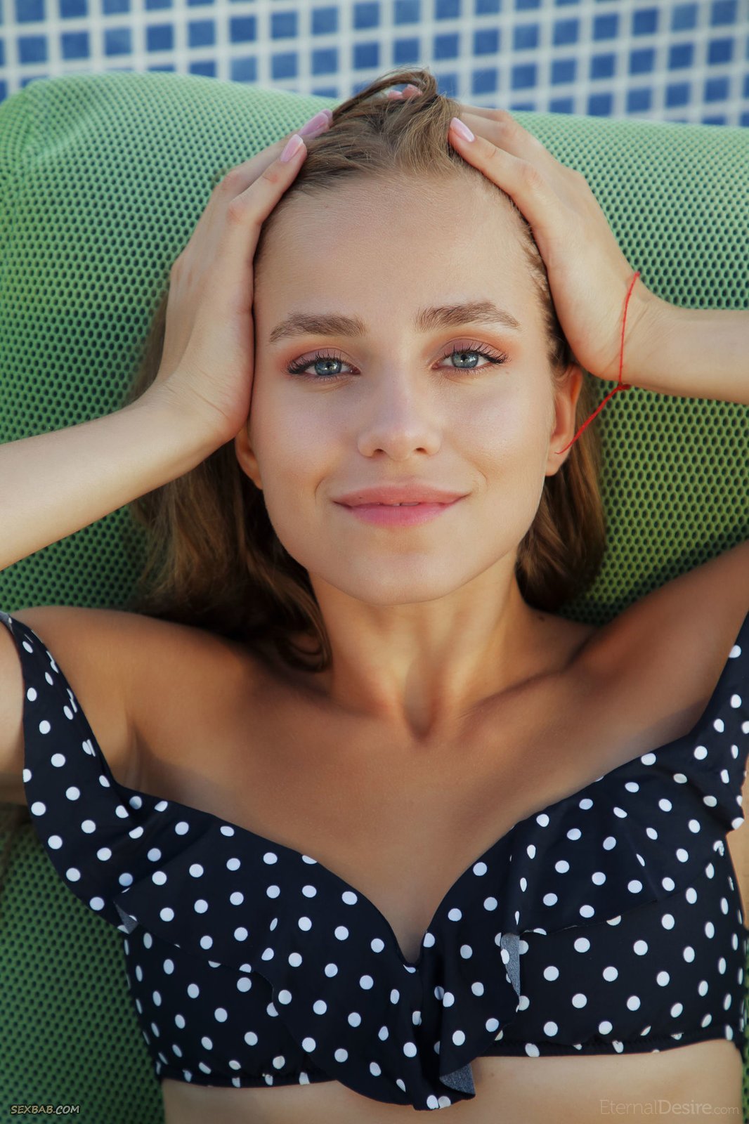 Описание: Сидя в кресле и грациозно вытягивая ножки на стоящий рядом пуфик, милая шатенка с сексуальным телом и маленькой грудью, очень медленно и довольно ловко стягивает с себя купальник. Оказавшись же голой, красавица с радостью поднимает коленки и обхватывая их руками акцентирует внимание на своей притягательной бритой письке.