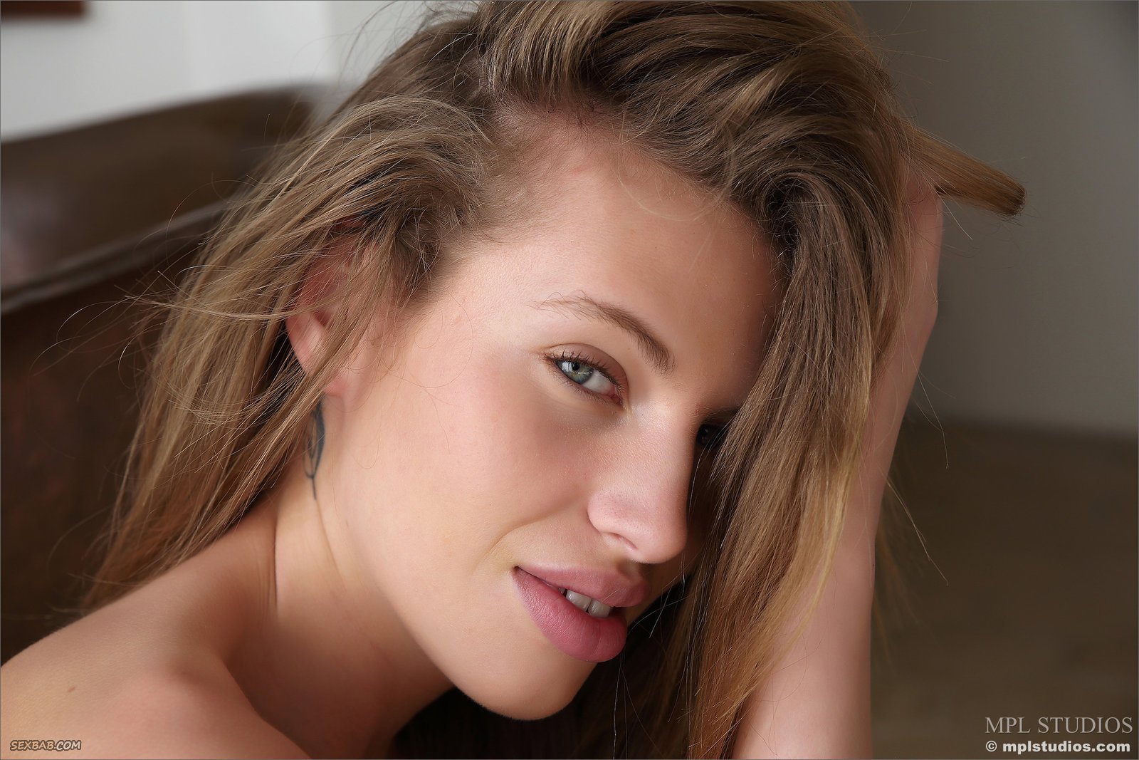 Сексапильная голая девка с пышными губками в ванной