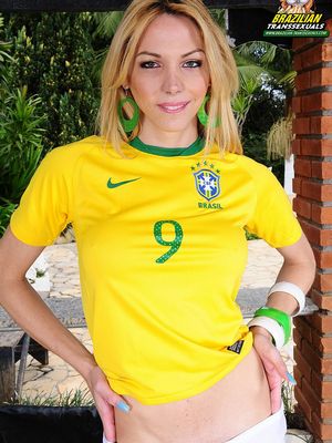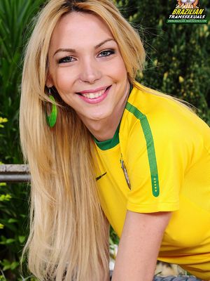 Смазливая блондинка с красивыми титечками лукаво улыбается. Неспешно стянув себя спортивную футболочку и шортики, крашеная развратница показывает длинный, сладкий, торчащий писюк. Она так поглаживает его с нежностью, видно, девица умеет им пользоваться.